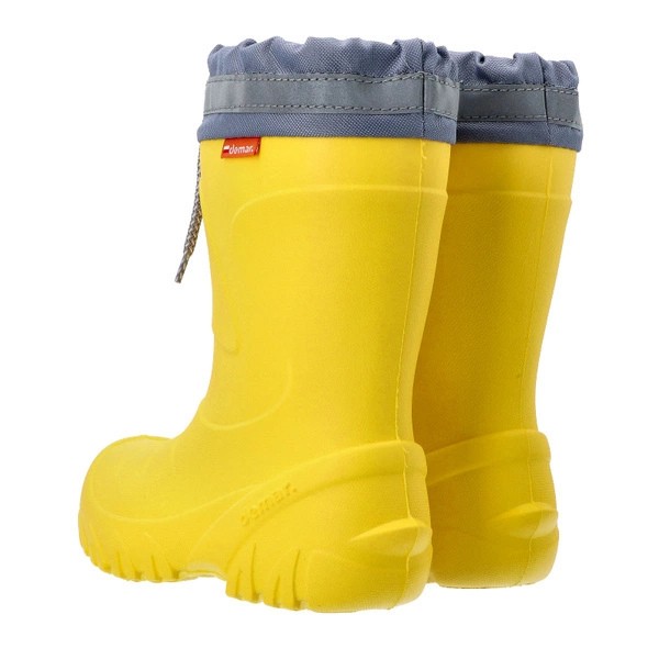 ykonane z niezwykle wytrzymałego materiału EVA kalosze dziecięce MMT-S L to absolutny hit jesienno-zimowego sezonu! Intensywnie żółta powłoka zwieńczona praktycznym, ale i stylowym ściągaczem to jeden z tych fasonów, które kochają dzieciaki. To, co z kolei zwraca uwagę rodziców to praktyczność tego typu kaloszy, które świetnie izolują stopę od zimna i wilgoci, zapewniając dziecku komfort i bezpieczeństwo podczas zabaw na śniegu i wodzie!