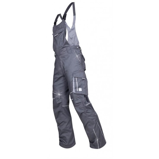 Spodnie robocze - ogrodniczki - z kieszenią na nakolanniki doskonale pasują dzięki ergonomicznemu szczupłemu fasonowi. Przyjemny w noszeniu wytrzymały i jednocześnie lekki materiał typu diagonal o obniżonej masie. Elastyczna lamówka w pasie ze zintegrowan...