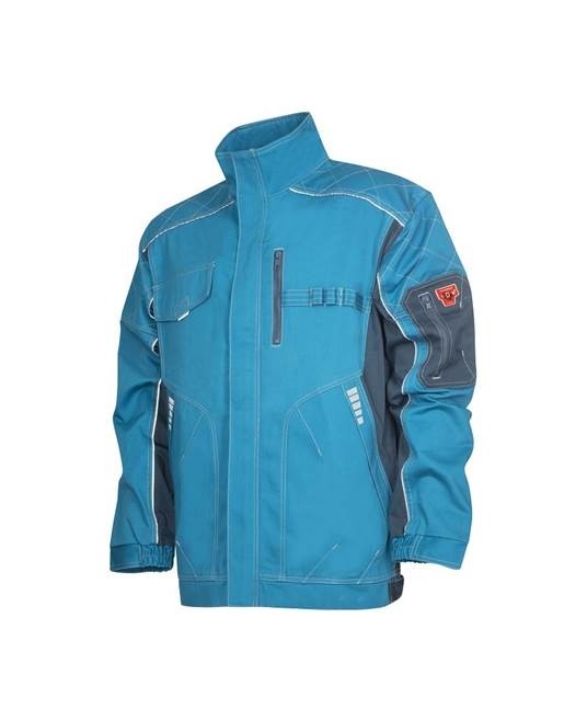 Bluza robocza, wysokiej jakości tkanina diagonalna z przeważającym udziałem bawełny naturalnej. Rękawy z elastyczną lamówką i regulowaną szerokością za pomocą zatrzasków, główny suwak kryty plisą na rzep, duża kieszeń piersiowa z plisą na rzep, 1 kieszeń piersiowa z suwakiem, uchwyty na ołówki, 2 przestrzenne kieszenie przelotowe na suwak, na lewym rękawie kieszeń z suwakiem, regulowana szerokość dolnej lamówki bluzy roboczej za pomocą zatrzasków. Wentylacja w części tylnej, wypustki odblaskowe w części przedniej i tylnej zwiększające widoczność. Materiał wierzchni: 60 % bawełna, 40 % poliester, splot diagonalny, ok. 260 g/m2 EN ISO 13688:2013