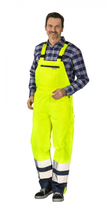 Spodnie ogrodniczki ostrzegawcze PLANAM zimowe - żółty/granatowy