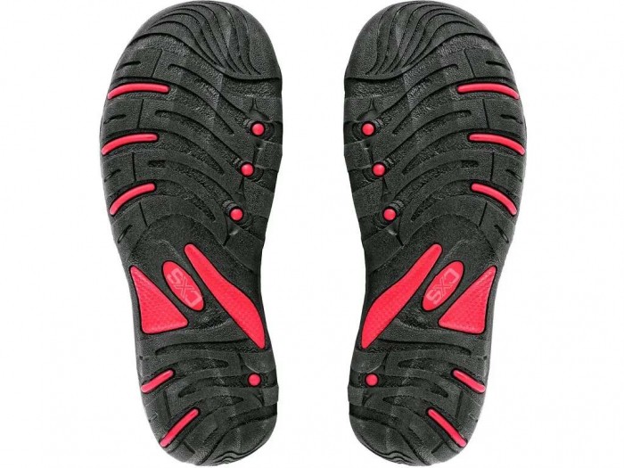 Sandały rekreacyjne z otworami po bokach dla lepszej wentylacji, ściągane gumką, odblaskowe dodatki. Materiał: cholewka ze skóry bydlęcej z dodatkami tekstylnymi, tekstylna wyściółka, podeszwa: phylon/guma.