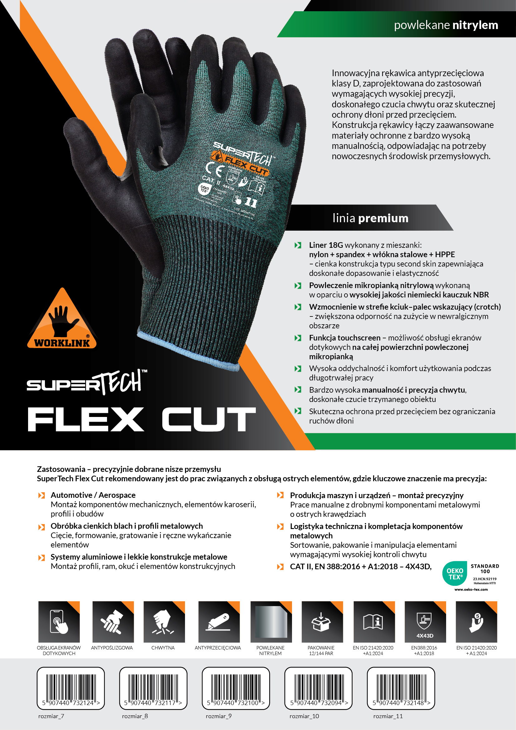 Innowacyjna rękawica antyprzecięciowa klasy D, zaprojektowana do zastosowań wymagających wysokiej precyzji, doskonałego czucia chwytu oraz skutecznej ochrony dłoni przed przecięciem. Konstrukcja rękawicy łączy zaawansowane materiały ochronne z bardzo wysoką manualnością, odpowiadając na potrzeby nowoczesnych środowisk przemysłowych.
