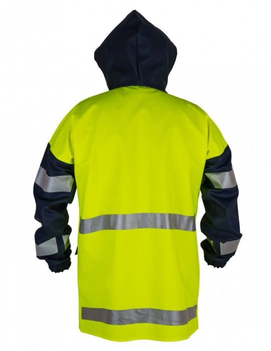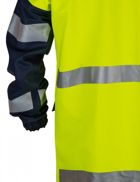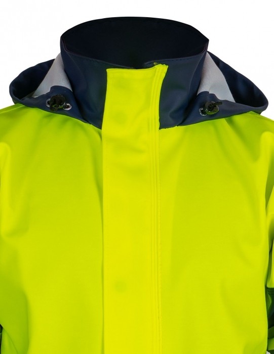 Kurtka produkowana z wodoochronnego, antyelektrostatycznego, chemoochronnego i trudnopalnego materiału. Wykonana techniką obustronnego zgrzewania szwów, co skutecznie podnosi ich wytrzymałość. Taśmy odblaskowe zwiększają bezpieczeństwo użytkownika w trakcie wykonywania pracy w warunkach ograniczonej widzialności. Funkcjonalność zapewniają: wygodne zapięcie na zamek i napy kryte plisą, wiatrołapy w rękawach oraz kaptur i dwie przednie kieszenie.