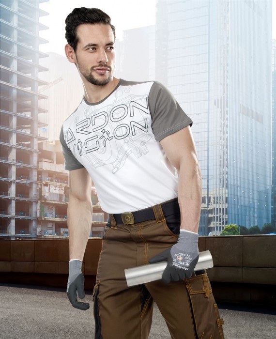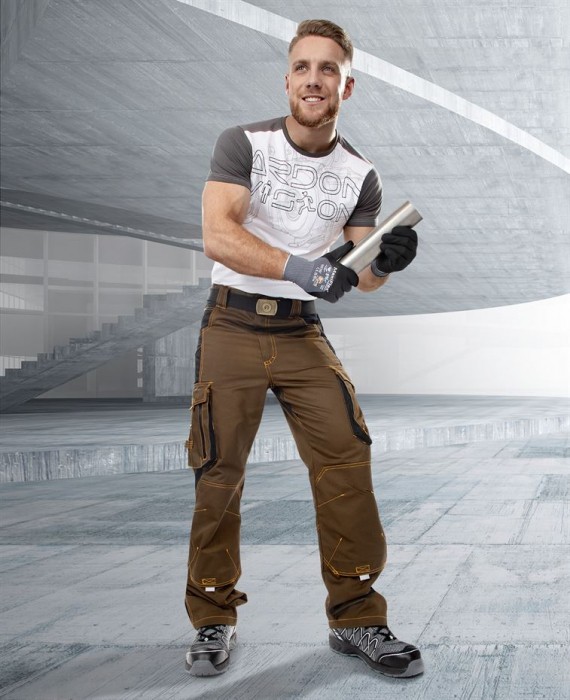 Spodnie do pasa z kieszenią na nakolanniki VISION 02/ ARDON spełniają normy EN 13688 (odzież ochronna, wymagania ogólne)/EN 14404 (środki ochrony indywidualnej, ochraniacze kolan do pracy w pozycji klęczącej). Bardzo komfortowe w noszeniu spodnie robocze w wariantach kolorystycznych: czerwonym, niebieskim, granatowym, zielonym, tarmac, szarym, ciemnoszarym, czarnym w rozmiarach od 46 do 64. Wykonane ze 60% bawełny, 40% poliester o splocie diagonalnym/ 260g/m2. Tkanina jest wytrzymała mechanicznie a jednocześnie miękka i wygodna w użyciu. Fason REGULAR FIT pozwala na pełną swobodę ruchu. Idealne dopasowanie zapewnia elastyczny kołnierz w pasie ze zintegrowaną gumą zwiększa komfort noszenia a podwyższona część tylna zapewnia osłonę pleców podczas ruchu. Spodnie posiadają wielofunkcyjne kieszenie: 2 przednie kieszenie przelotowe, 2 tylne kieszenie kryte plisą, 2 przestrzenne kieszenie miechowe na lewej i prawej nogawce kryte plisą, 1 kieszeń z suwakiem na komórkę do wielkości 5,6“, kieszenie na śrubokręt, uchwyty na ołówki, 2 kieszenie na miarkę składaną zintegrowane z lampasem po lewej i prawej stronie. Spodnie wyposażono w wypustki odblaskowe w części przedniej i tylnej, które zwiększają bezpieczeństwo i widoczność. Wzmocnione kolana są odporne na przetarcia i uszkodzenia mechaniczne, posiadają kieszenie na nakolanniki. Spodnie posiadają interesujące elementy wizualne takie jak kontrastowe pikowanie nicią dżinsową, suwaki i oryginalne wzmocnienia plis. Bardzo wygodne i jednocześnie wytrzymałe ogrodniczki robocze sprawdzą się przy każdej pracy. Dedykowane dla brukarzy, branży budowlanej, montażowo-instalacyjnej, do prac magazynowych, porządkowych, warsztatowych.