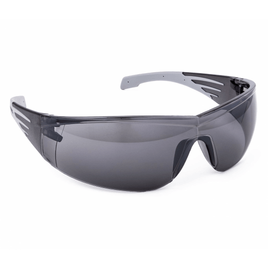 Kolory: przezroczyste, szare szkła z szarymi zausznikami. Szkła: 1 - najwyższa klasa optyczna, odporność mechaniczna - FT - uderzenie o niskiej energii w extremalnych temperaturach, 5-3,1 filtr przeciwodblaskowy, chroni przed olśnieniem słonecznym, bez ochrony przed podczerwienią. Nosek: zintegrowany ze szkłami. Normy: EN 166. Rozmiar: uniwersalny. Waga: 28g;
